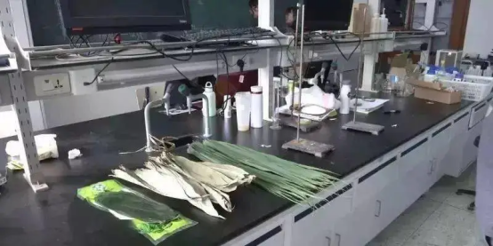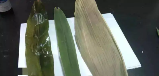 把粽葉在水里稍微煮一下,觀察湯水的顏色。新鮮的粽葉煮出來的水,明顯就是一種枯黃的感覺;而硫酸銅處理過的粽葉泡完水之后,實際上是硫酸銅的綠色。