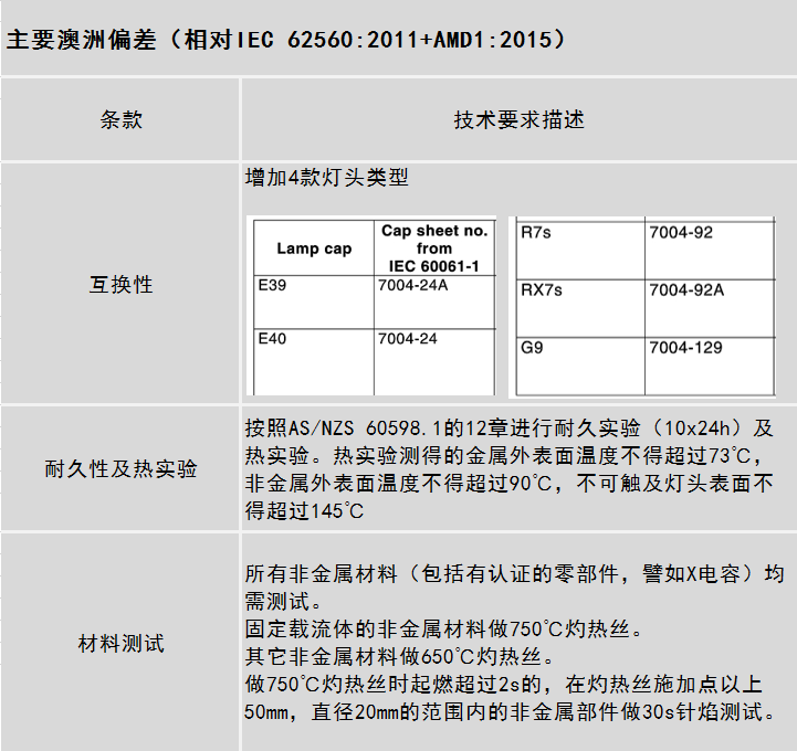 澳洲普通照明用50V以上自鎮流LED燈安全要求從2018年3月14起強制實施,目前與前一版本并行使用。建議設計生產相關產品的客戶提前準備,按照新標準進行評估、測試和認證。