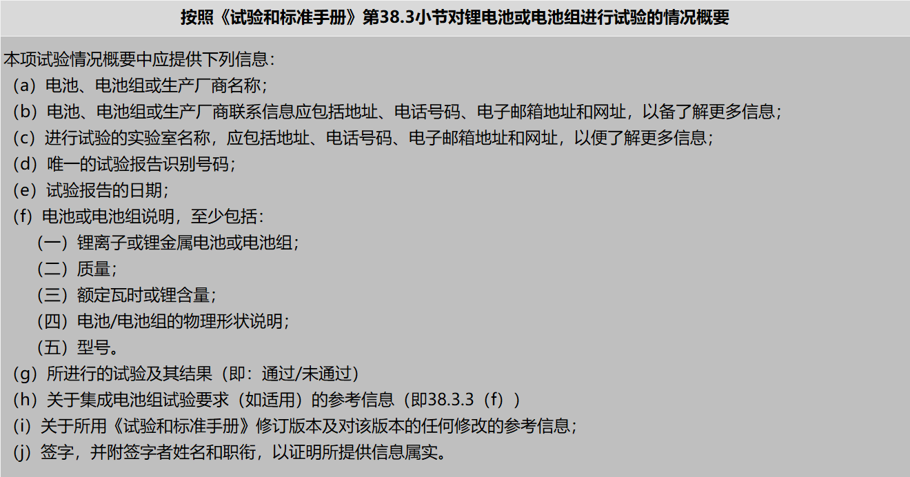 另增加內容38.3.5 鋰電池和鋰電池組試驗情況概要