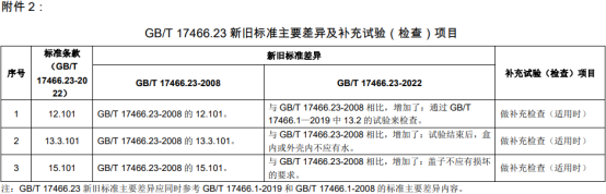 2.GB/T 17466.23新舊標準主要差異及補充試驗(檢查)項目
