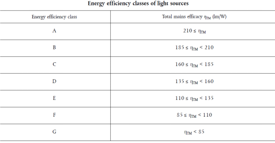 從以上表格上來看,歐盟對燈具產(chǎn)品的效率要求有了非常大的提高。以前的產(chǎn)品,達(dá)到85lm/W但不超過110lm/W的效率,基本上可以進(jìn)入到A,A+ 或是A++等級中,而現(xiàn)在,只能達(dá)到F等級。