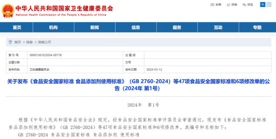 重磅!GB 2760-2024《食品安全國家標準 食品添加劑使用標準》正式發布