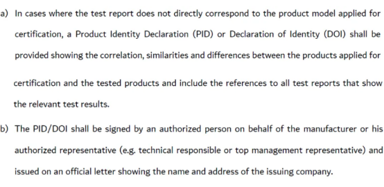1. 報(bào)告型號(hào)與申請(qǐng)認(rèn)證型號(hào)不一致時(shí),制造商需要簽署產(chǎn)品一致性聲明,說(shuō)明申請(qǐng)GCC的產(chǎn)品和提供的測(cè)試報(bào)告中的產(chǎn)品一致性,并由制造商簽字蓋章。