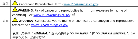 OEHHA曾分別在2021年、2022年和2023年連續(xù)三年提出修改加州65短格式警告標簽的建議,但這些建議一直沒有得到實施。本次OEHHA屬于第四次提議,提議修訂加州65法規(guī)第27篇第6章“清晰和合理的警告標簽—安全港方法和內(nèi)容”第25601、25602、25603和25607.2 節(jié),并采用新的第25607.50、25607.51、25607.52和25607.53節(jié)。