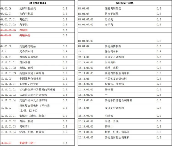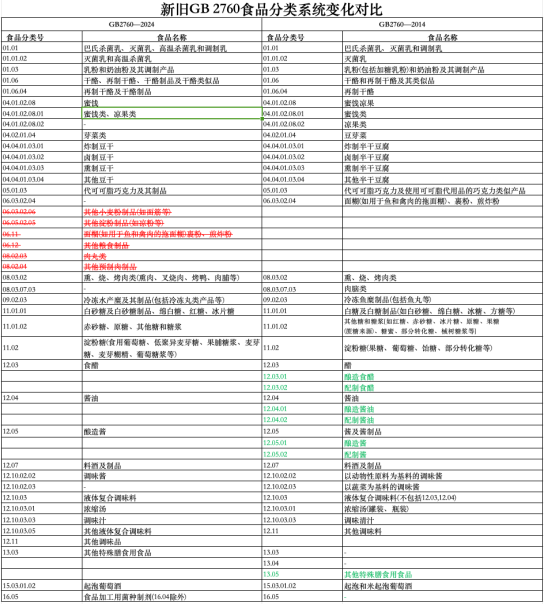 d) 刪除了配制醬油、配制食醋、配制醬等部分食品分類。