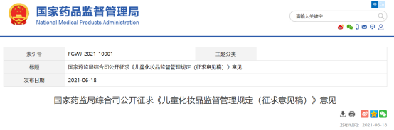 2021年6月18日,國家藥監局在其官網發布了《兒童化妝品監督管理規定(征求意見稿)》,并向社會公開征求意見。目的是為規范兒童化妝品生產經營活動,加強兒童化妝品監督管理,保障兒童用妝安全。
