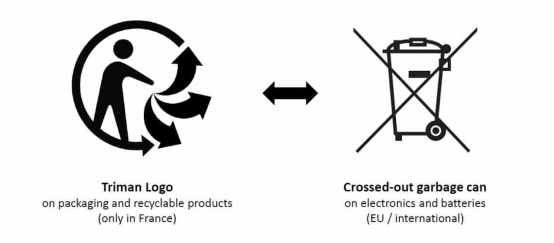 近期,法國環(huán)境法案第L541-9-3章節(jié)對Triman標志進行了更新:自2022年1月1日起,Triman標志除了是所有(家居)包裝、紡織品和鞋、家具、輪胎和紙制品的強制性標志,還適用于電子產(chǎn)品、電池和類似產(chǎn)品。