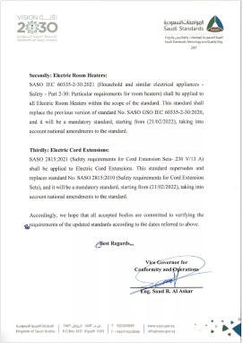 沙特SASO發布熱水器、電暖器、電源線產品的最新標準