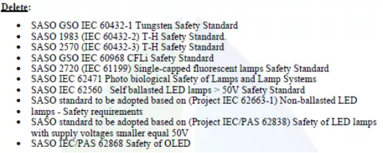 沙特照明產品能效要求2021版修訂,2022年2月21日強制。主要修訂內容如下: