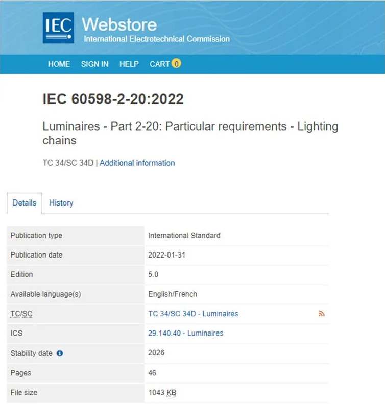IEC 60598-2-20:2022燈串最新版標準正式發(fā)布