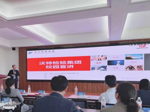 2024年4月24日下午,寧波高新區檢驗檢測認證產業高質量發展校企合作簽約儀式暨檢驗檢測專場招聘活動在浙江萬里學院隆重舉行。寧波市市場監督管理局領導、高新區分局、浙江萬里學院等領導及相關負責人,寧波市沃特測試技術服務有限公司(以下簡稱:寧波沃特)作為高新區檢驗檢測機構代表之一(另外兩家分別為SGS寧波,浙江中一檢測)出席了本次活動,并做了企業宣講。
